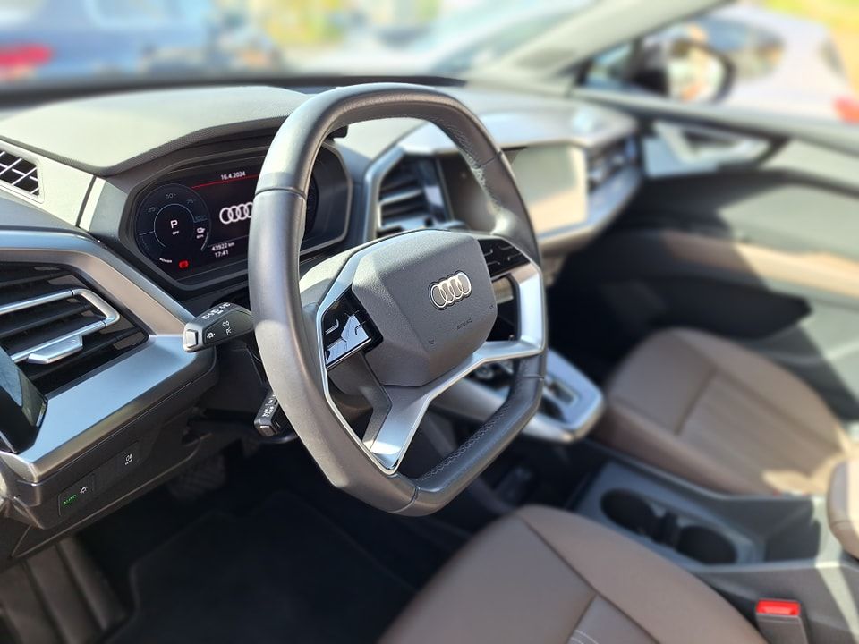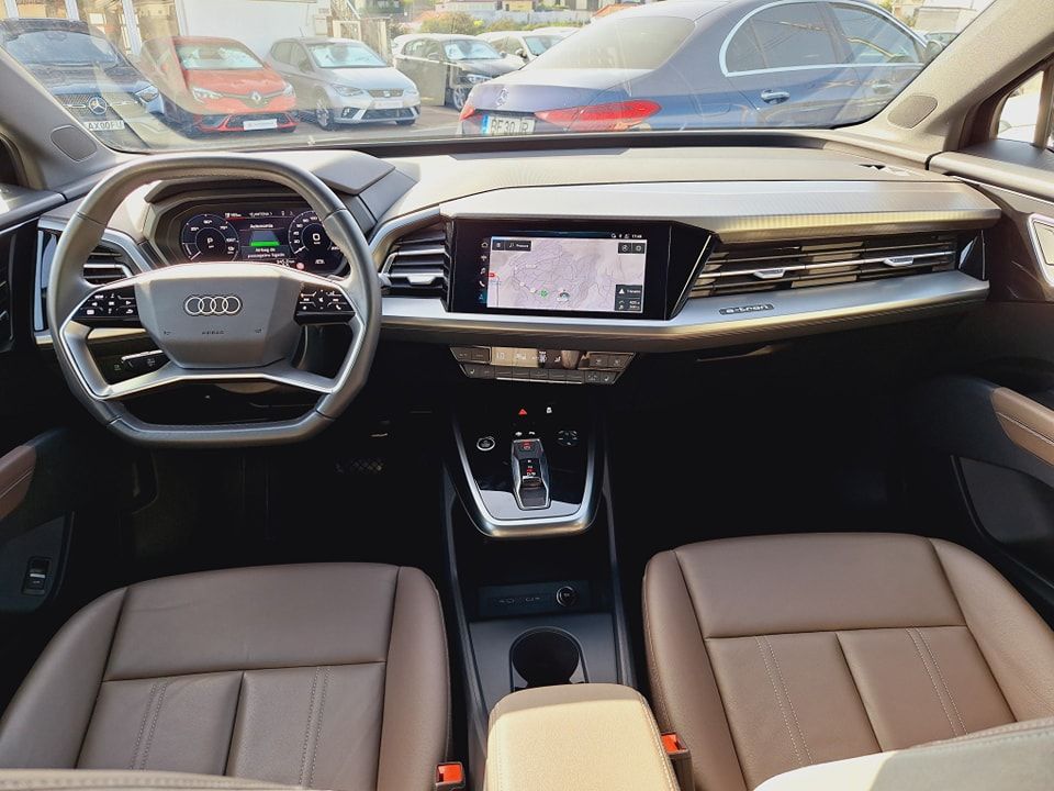 No interior, o Audi Q4 E-TRON 40 82 KW proporciona uma experiência de condução luxuosa e conectada. Com capacidade para 5 ocupantes e um amplo espaço de carga, este veículo adapta-se facilmente às necessidades do dia-a-dia. Equipado com uma caixa automática e uma vasta gama de tecnologias de assistência à condução, como o sistema de navegação MMI e o Audi Virtual Cockpit, cada viagem transforma-se numa experiência única e envolvente.